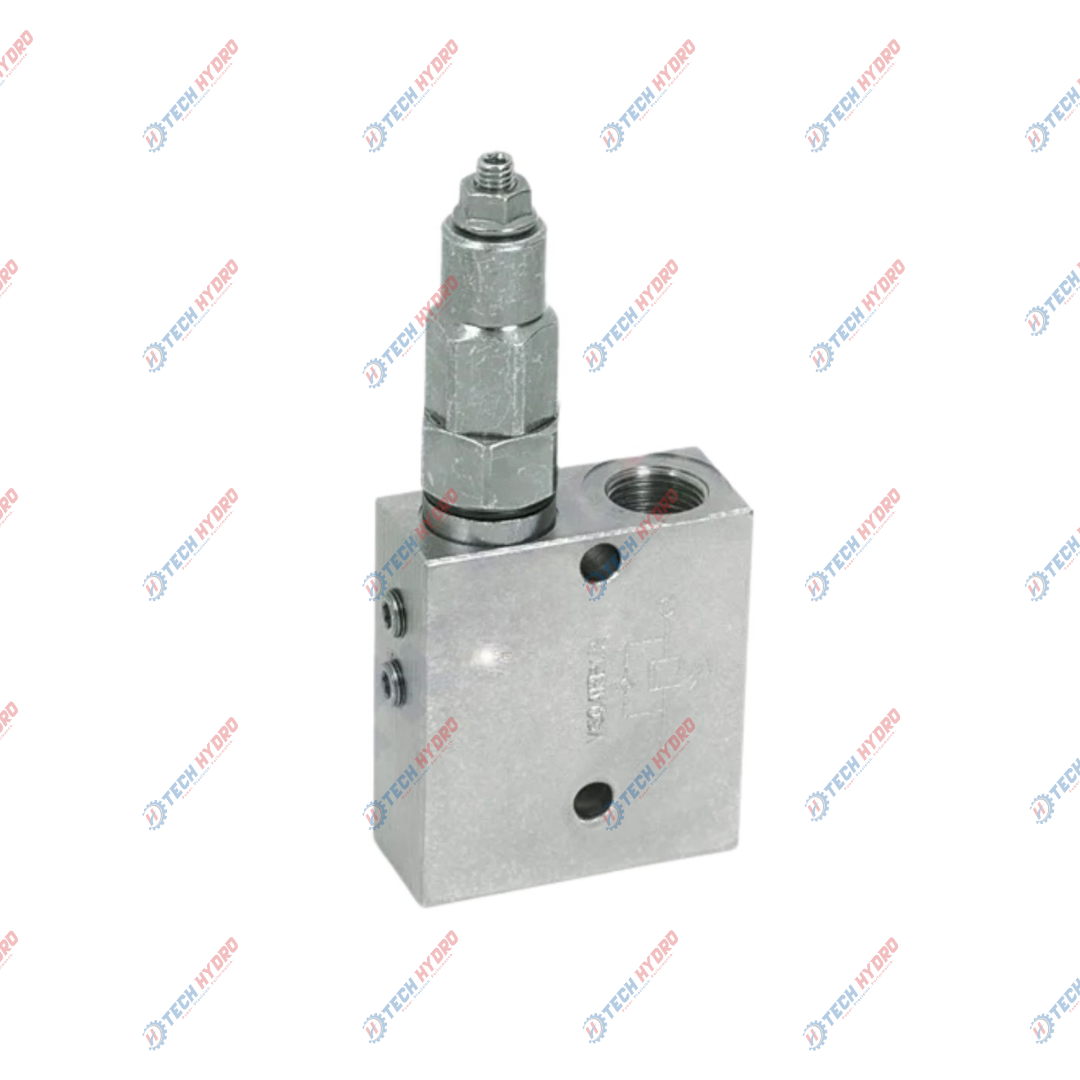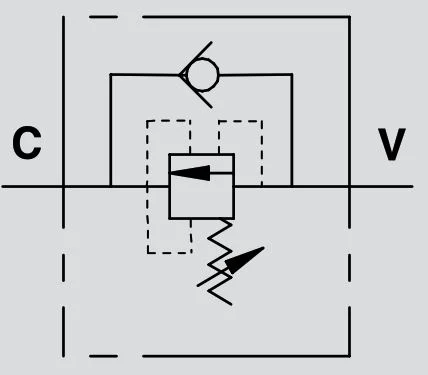 Sequence valve is used to feed 2 cylinders in sequence: it provides flow to the secondary circuit when a primary circuit function has been completed reaching the pressure setting. Return flow is free.
